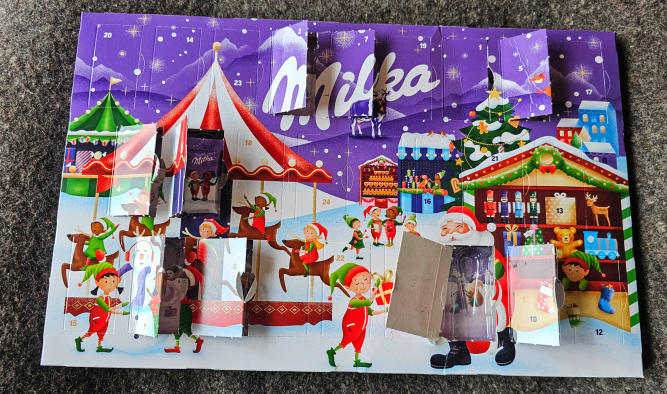 Bei der Grimminghütte gibt es nicht nur Getränke sondern!!!!!! einen Adventkalender. Ich habe Glück, heute war noch keiner da.