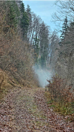 Die nette, bei nassem Wetter gar nicht so einfache Tour ist 8km lang, dabei sind ca. 550Hm zu bewältigen.